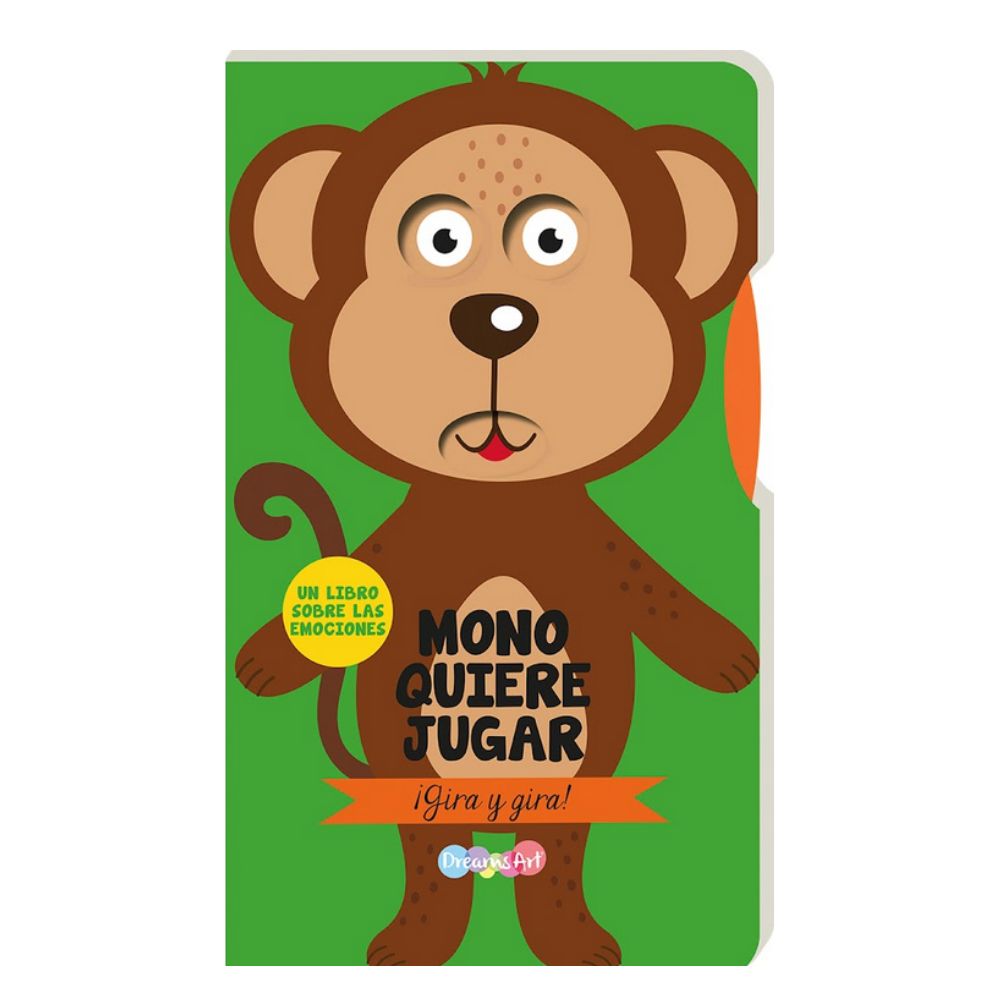 Un libro sobre las emociones. Acompaña a Mono a jugar en un día que estara lleno de sorpresas. ¿Cómo se siente Mono? Gira la rueda y descúbrelo.